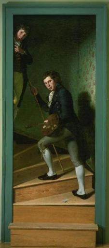 Almost life-size portraits of Peale's two sons. Highly detailed and realistic work that has the added trick of using a large door frame as its picture frame, and that has at the bottom of the frame an actual wood step to continue the painting outside the plane of the canvas.